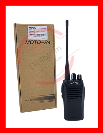 MOTO R4 بیسیم واکی تاکی مجاز دارای تاییدیه سازمان تنظیم مقررات و ارتباطات رادیویی به شماره 10252947بوده و با ابعاد بزرگ و شمایل مشابه کنوود 3207 است.